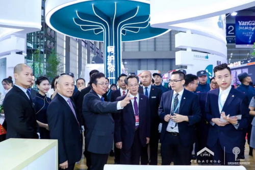 ▲中物協(xié)沈建忠會長(前排左三)與其他重要領導參觀雅生活展位