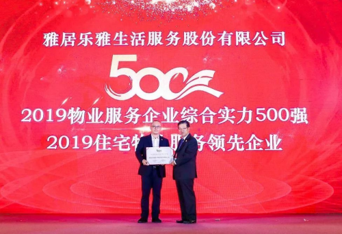 在下午舉辦的主論壇上,雅生活摘獲中物研協(xié)頒發(fā)的“2019物業(yè)服務企業(yè)綜合實力500強”第七名和“2019住宅物業(yè)服務領先企業(yè)”兩項重要殊榮。副總裁兼物業(yè)服務公司總裁馮欣作為代表上臺領獎。