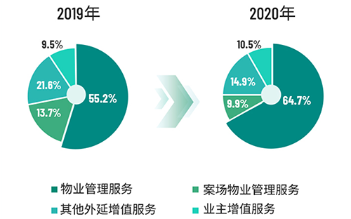 規(guī)模擴(kuò)張、多元發(fā)展是當(dāng)下物企破圈前行的核心競爭力。2020年,雅生活集團(tuán)通過獲取股東優(yōu)質(zhì)項(xiàng)目、第三方市場拓展等內(nèi)生增長模式,協(xié)同資本驅(qū)動外延增長,助力集團(tuán)規(guī)模強(qiáng)勢增長,業(yè)態(tài)布局均衡,進(jìn)一步深化了全業(yè)態(tài)、全產(chǎn)業(yè)鏈布局。按在管面積劃分,住宅40.4%,公建46.5%,商業(yè)及綜合體13.1%。按收入劃分,住宅43.1%,非住宅56.9%。在合約面積中,第三方項(xiàng)目占比提升至74.1%。